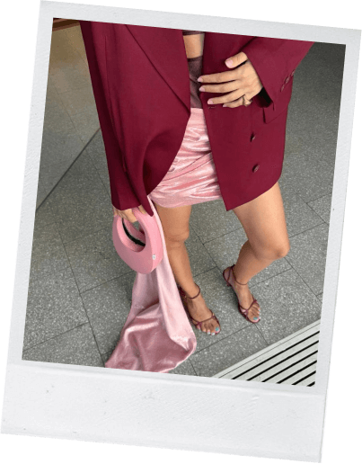 с коктейльным. Приветствуются монохромные образы — верх и низ одного цвета.